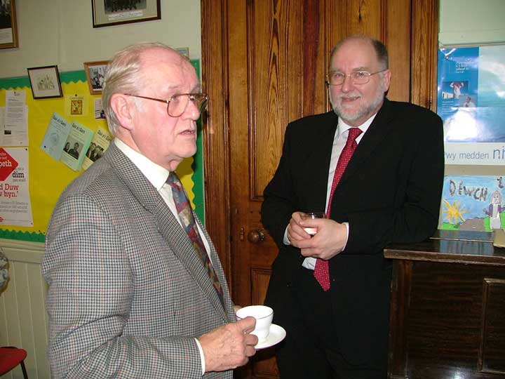 Dr Wyn James a Bryn Lloyd, cadeirydd y noson
