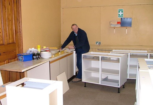 Rees Thomas yn yr 'hen' gegin